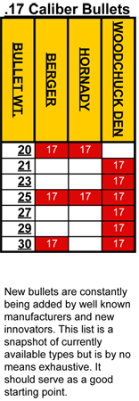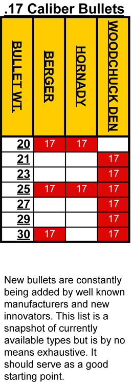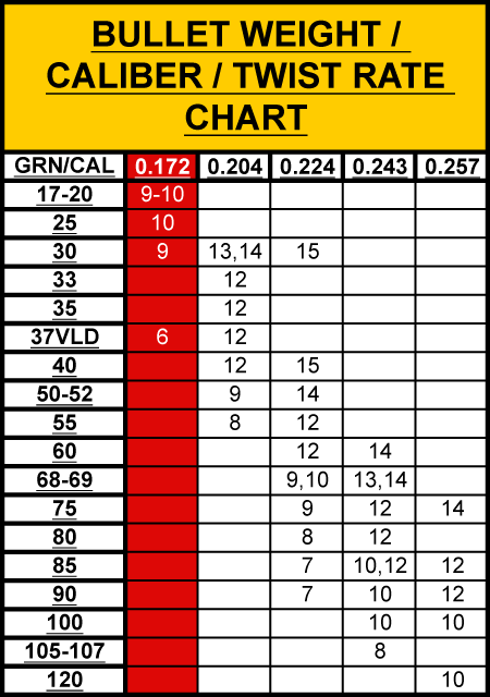 Typical recommended twist rates for .17 Caliber bullets. This chart is a compilation of data from multiple bullet and barrel manufacturers.